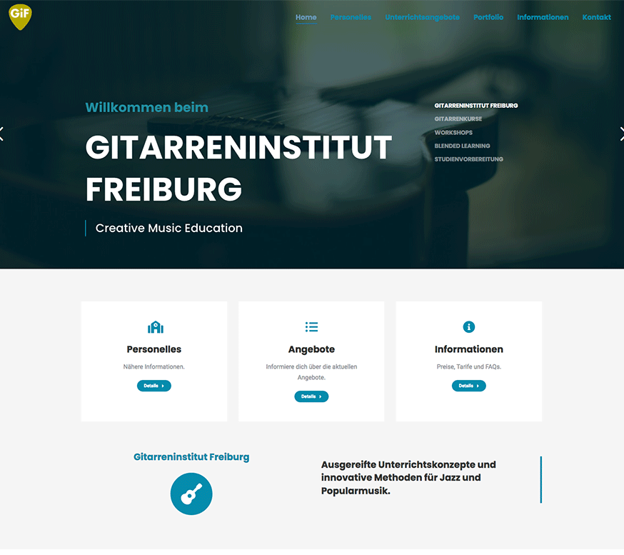 Im Vordergrund stehen die Online Gitarrenkurse, die in ihrer Aufbereitung verschiedener Themen aus dem Jazz, Blues und Pop auf „echten“ vormals gehaltenen Unterrichsstunden basieren. Das Herzstück bilden dabei die hochwertig produzierten Videos und das Download-Material in Form von einer Vielzahl an Übungsstücken sowie Noten und Tabs. Neben dem Online Gitarrenkurs werden separat erhältliche eBooks angeboten, die das gesamte Wissen in gebündelter Form ausführlich zum Nachlesen beinhalten.